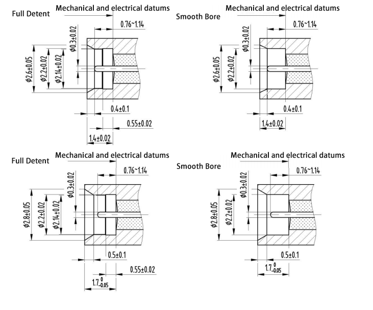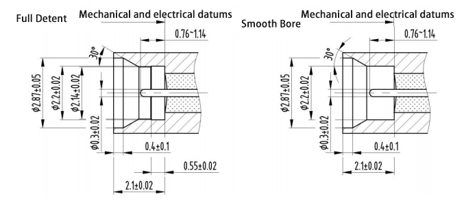 Luftversiegelte HF-Koaxialsteckverbinder vom Typ SMPM-J haben zwei Schnittstellenformen: vollständige Hemmung und blankes Loch. Bei der Modellbezeichnung steht F für Vollhemmung und