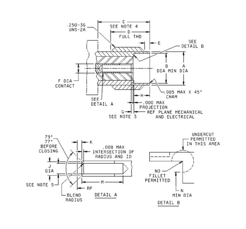 3. Zuvor qualifizierte Teile mit einer maximalen Kontakttiefe von 0,030 Zoll (0,76) sind für die Verwendung durch die Regierung nicht akzeptabel. Es ist Vorsicht geboten, um festzustellen, ob bei der Wartung und beim Austausch von Teilen ein .030-Rezessionsdesign verwendet wird.