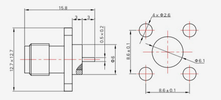 | SMA-KFD73 | 16 | 4 | 1,27×0,2 | Φ4.1 | Φ4,2 |